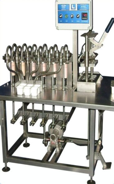 The MPF6ES is a manually operated yoghurt filler, enhanced with an integrated electronic scale to ensure consistent fill levels across 6-pack trays.